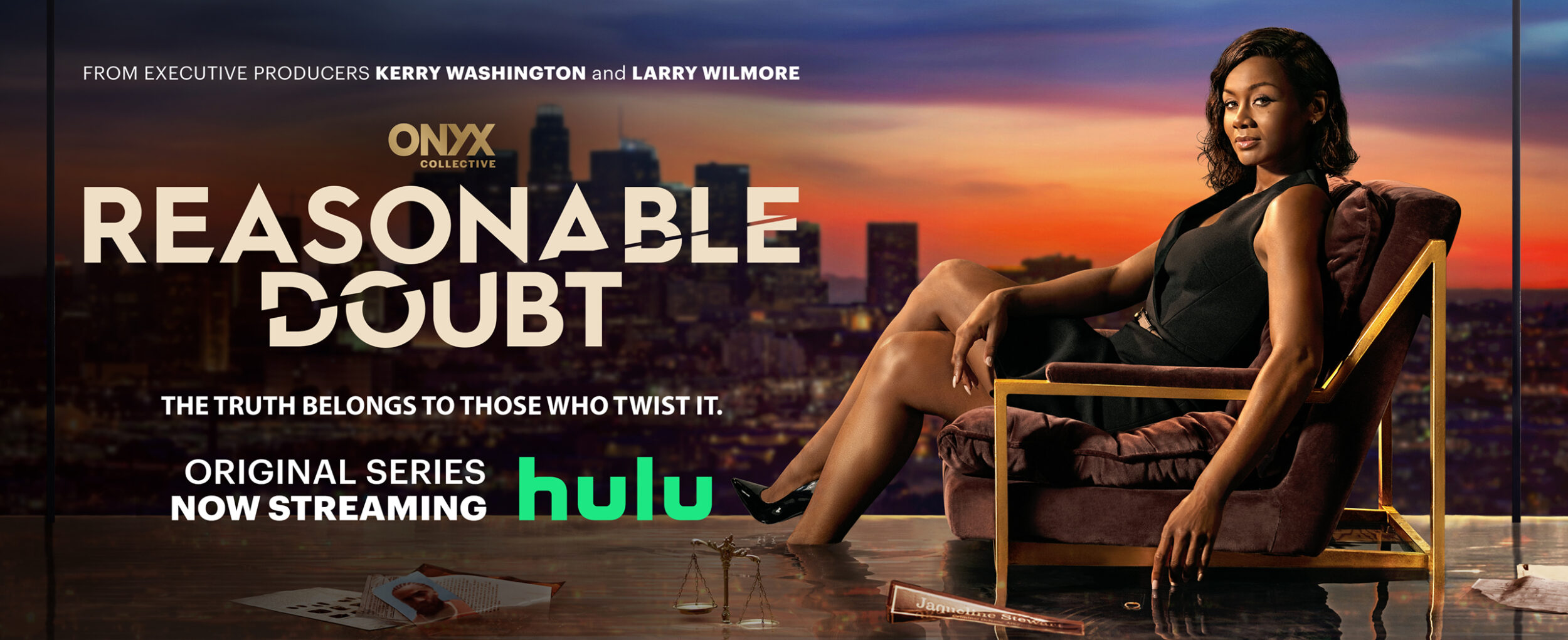 Our special shoot spot above “The Reveal” kicked off our integrated campaign, introducing Emayatzy Corinealdi as the lead, teasing the storyline, and announcing the premiere date. We shot the entire cast on a green screen stage for The First Look Featurette, interviewing each character about the show and highlighting Kerry Washington as an EP and director of the first episode. Then for the Motion Poster, we used a techno crane to shoot details of Jax’s office as we see legal books and crime scene photos completely submerged in water, signifying that she may not have everything under control.